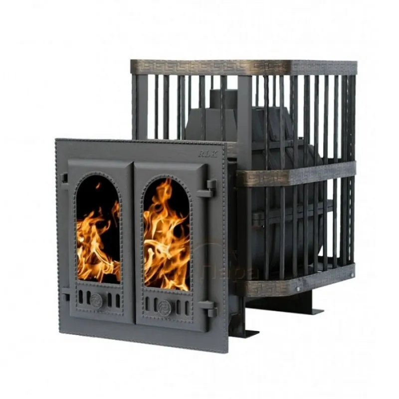 Печь банная чугунная "Сибирь-24" с двухстворчатой каминной дверцей