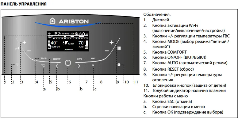 Двухконтурный газовый котел серии Ariston Alteas X 30 CF имеет следующие плюсы в эксплуатации:
