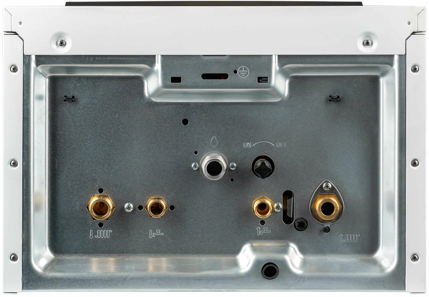 Двухконтурная конструкция котлов обеспечивает не только отопление, но и оперативный нагрев воды для бытовых нужд. За это отвечает вторичный теплообменник из нержавеющей стали с увеличенной площадью теплообмена. Интегрированные датчики температуры воды и расходомер позволяют системе мгновенно реагировать на изменения потребления, поддерживая заданную температуру воды на высоком уровне.