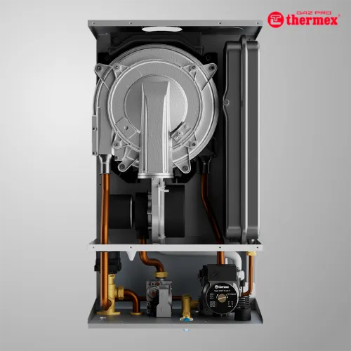 Газовый конденсационный настенный котел Thermex Pallada PM35 (двухконтурный) обеспечивает мощность 35 кВт, подходящую для отопления и горячего водоснабжения помещений средней и большой площади. Конструкция включает раздельные теплообменники, латунную гидравлическую группу и трехступенчатый насос, что обеспечивает надежность и высокую эффективность эксплуатации.