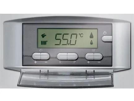 Автоматика управления с ЖК-дисплеем регулирует работу котла. Съемная цифровая панель может быть установлена в любом удобном месте дома. Группа безопасности защищает от перегрева теплоносителя, его замерзания, от заклинивания насоса и трехходового клапана. Ионизационный контроль пламени и датчик тяги также повышают безопасность использования отопительного котла.