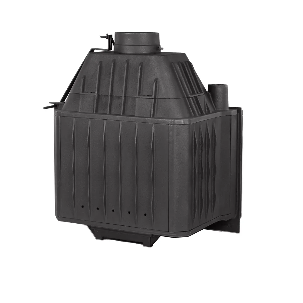 Каминная топка MAIN от компании из России «FireWay» изготовлена из высокопрочного чугуна и подходит для отопления помещений, максимальный расчетный объем которых при достаточной степени изоляции не превышает 280 куб.м. Модель оснащена шиберной заслонкой, колосниковой решеткой, зольным ящиком и ограничителем дров. Характеризуется высоким показателем коэффициента полезного действия – загрузка сухих дров позволяет получить КПД в пределах 75%. При относительно скромных габаритах (ШхВхГ = 711х759х440 мм) обладает высокой мощностью – 14 кВт.