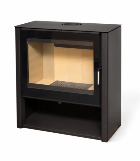 Пристенная печь с оригинальным и лаконичным дизайном. Большая плоская топочная дверка. Идеально подходит для обогрева помещения, выполненного в современной стилистике площадью 45-90 м2. Размер поленьев 30 – 60 см.